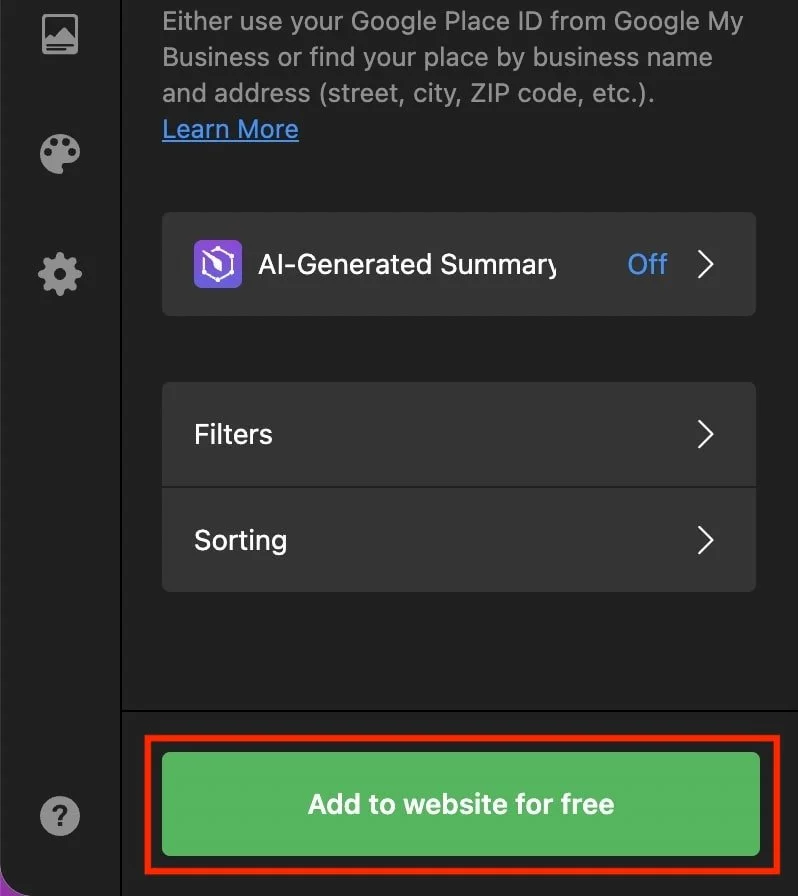 7. After you’ve made all of your filtering and customization choices, click Add to website for free
