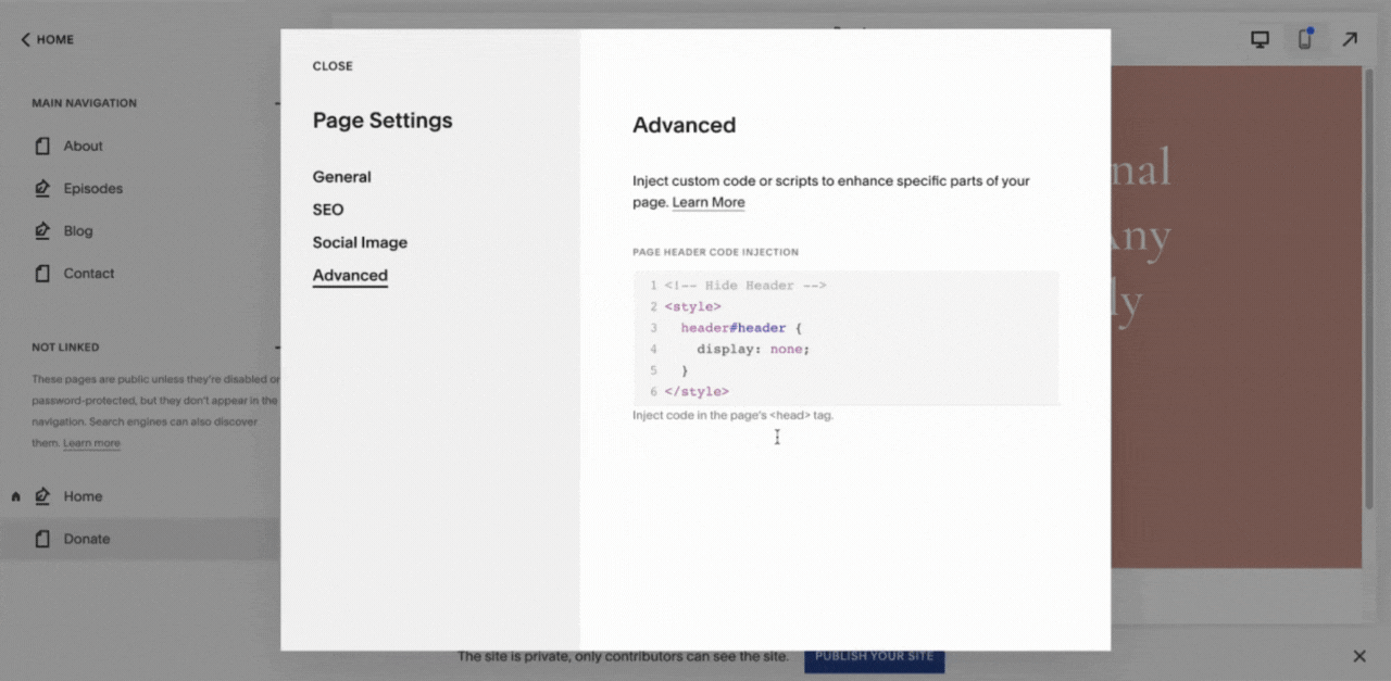 How to Remove the Header and Footer from a Single Page in Squarespace (Version 7.1)