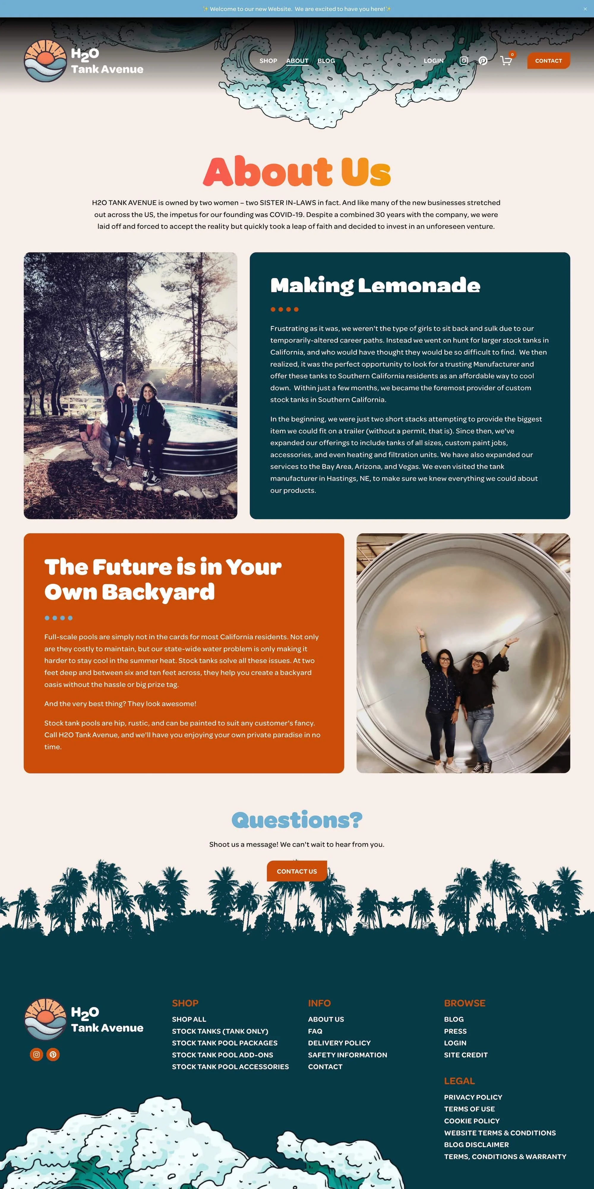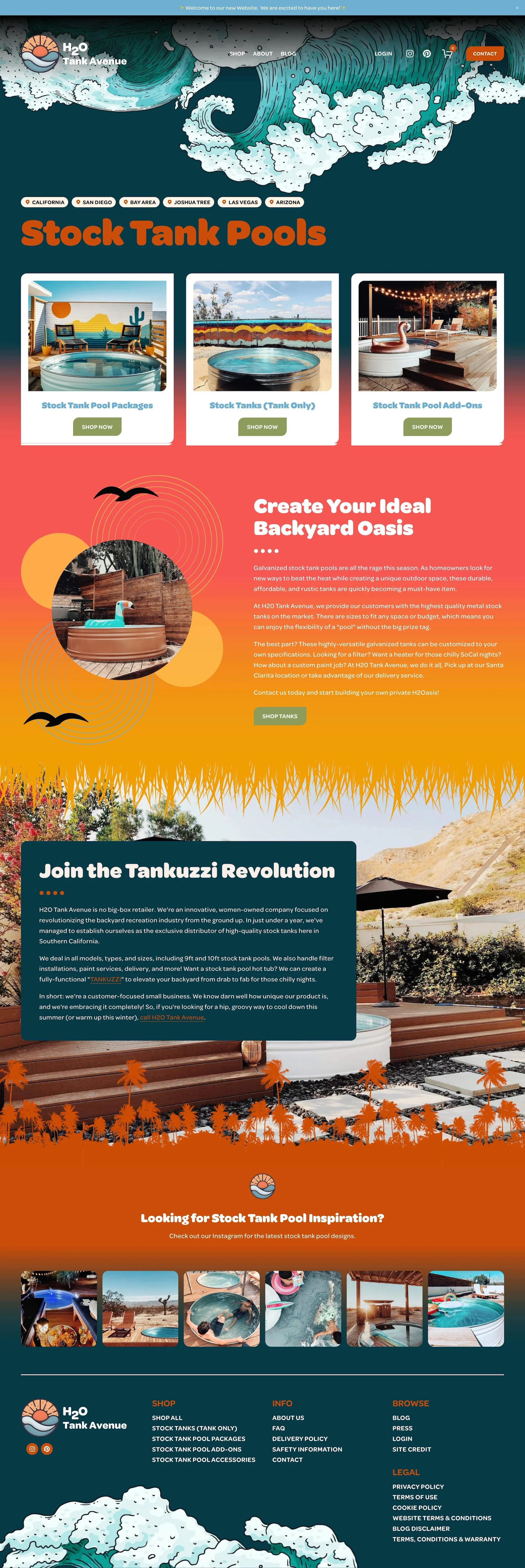 H2O Tank Avenue is a women-owned business operating out of California. They sell stock tank pools packages to the residents of California, Las Vegas and Arizona. They felt that their current website had a poor design and was unclear/confusing in how to navigate/find information. They also felt that it had a cookie cutter look and did not accurately represent their brand. They wanted their new website’s storefront to be very easy for their customers to navigate to hopefully minimize the amount of questions they were being emailed daily. They also wanted people to have fun with the new website design, while still easily finding information. Their new website is bold, colorful and fun while still being professional and bringing in many new customers. They are even ranking on Google page 1 for many of their target keywords!